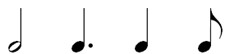- Cấu trúc của bài là đoạn nhạc hai câu, mỗi câu gồm 4 ô nhịp.