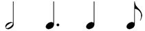 - Cấu trúc của bài là đoạn nhạc hai câu, mỗi câu gồm 4 ô nhịp.